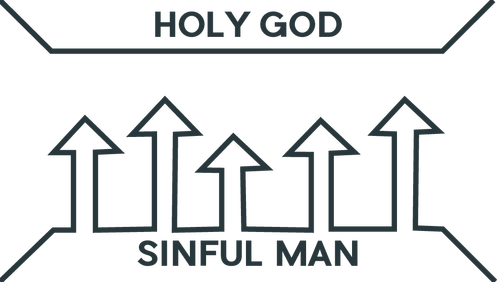 This diagram illustrates that God is holy and man is sinful. A great gulf separates the two. The arrows illustrate that man is continually trying to reach God and the abundant life through his own efforts, such as a good life, philosophy, or religion – but he inevitably fails.